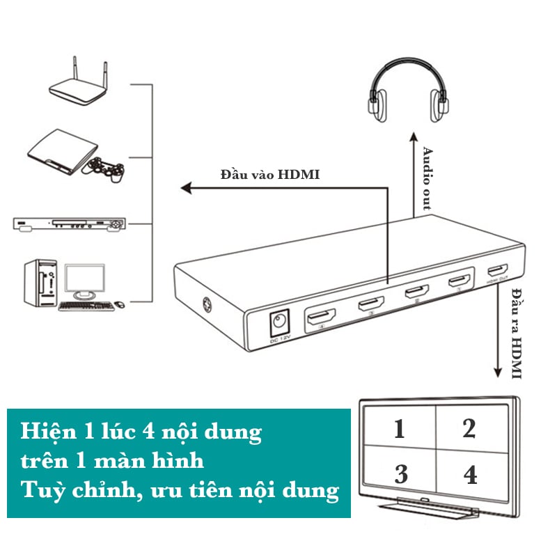 Hiển thị cùng lúc 4 nguồn HDMI trên 1 màn hình