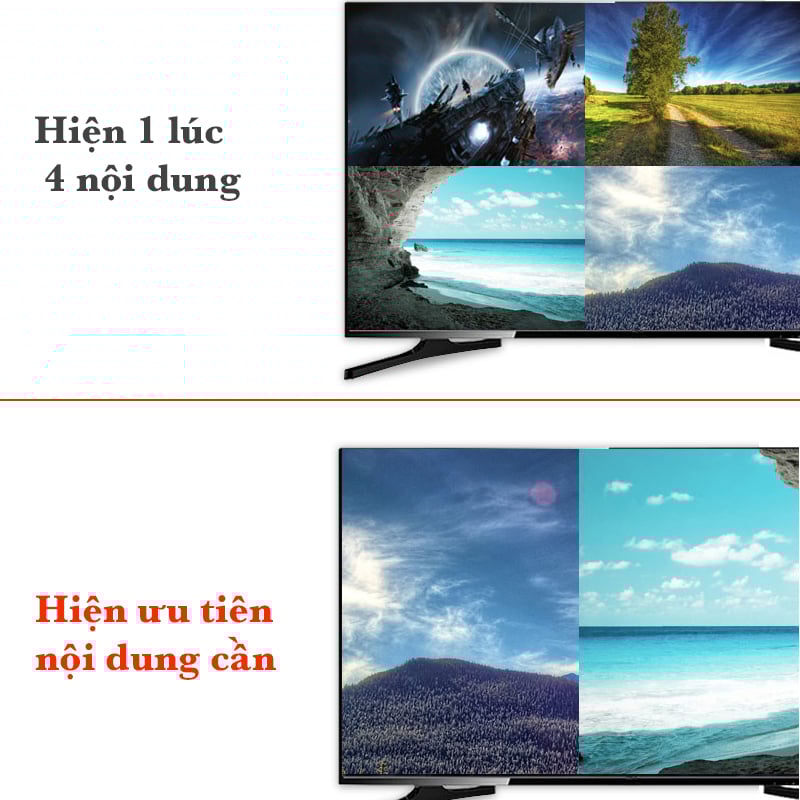- Chế độ hiển thị: 1 / 2 / 3 / 4 màn hình