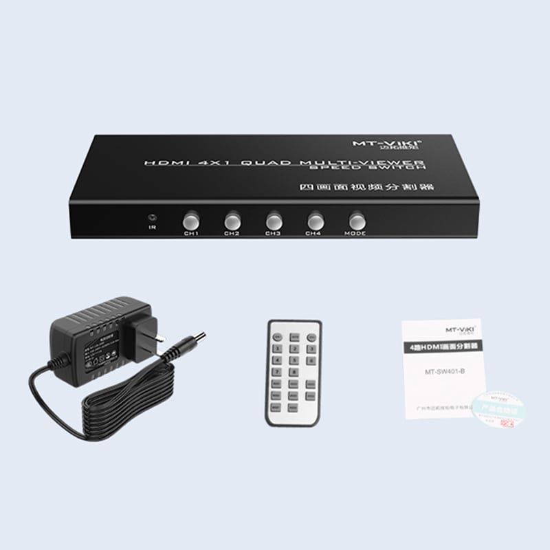 Bộ gộp tín hiệu HDMI MT-VIKI MT-SW041-B là thiết bị HDMI Multi-viewer 4 vào 1 ra chuyên dụng, cho phép hiển thị đồng thời 4 nguồn HDMI trên cùng một màn hình với độ phân giải Full HD 1080P@60Hz. Đây là giải pháp lý tưởng cho phòng giám sát camera, livestream đa máy, trung tâm điều khiển, showroom, phòng họp và đào tạo.