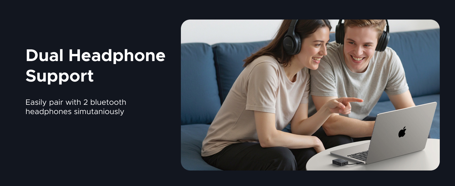 Điều này đặc biệt hữu ích khi bạn muốn cùng xem phim hoặc nghe nhạc với người bên cạnh trong chuyến bay hoặc tại nhà mà không làm ảnh hưởng đến người khác. Mỗi người vẫn có thể tận hưởng chất lượng âm thanh cao mà không bị giảm độ ổn định.