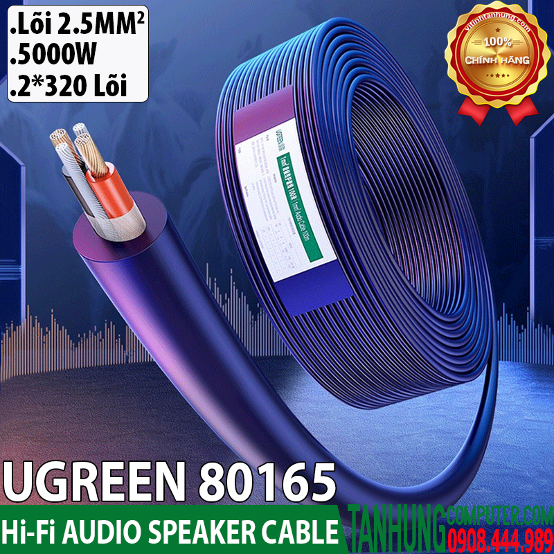 Cáp Loa Âm Thanh Sân Khấu 100M Ugreen 80165, Sợi 2×320 Lõi Dày Lõi Dày 2.5mm² , 5000W Chính Hãng Cao Cấp