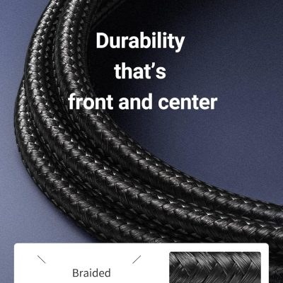 Không chỉ mạnh về hiệu suất, Ugreen 80423 NW150 còn gây ấn tượng với vỏ bọc dây dù cao cấp. Lớp vỏ ngoài được bện tỉ mỉ từ sợi nylon tổng hợp giúp dây chịu uốn cong, chống xoắn, chống rối và chống mài mòn cực tốt.
