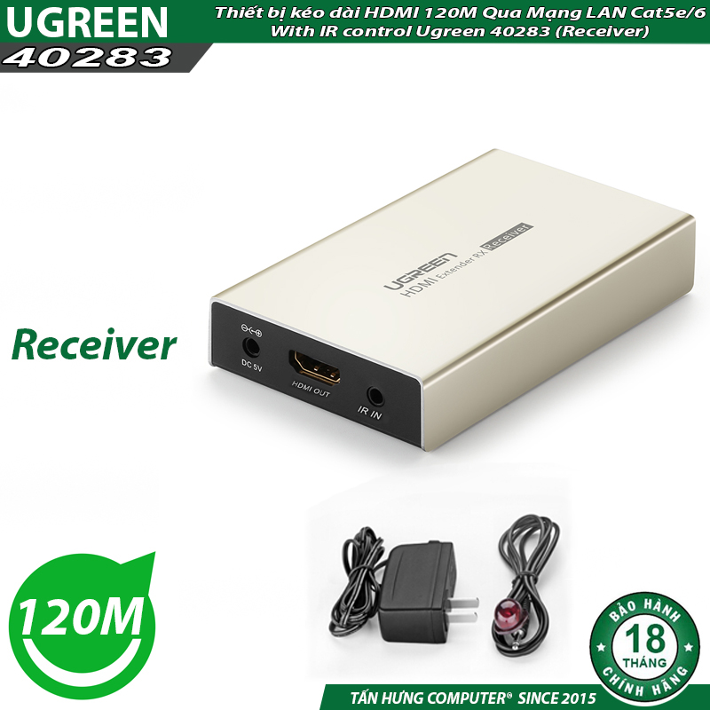 - Bộ nhận tín hiệu HDMI qua cáp mạng Cat5/6e Ugreen 40283 hỗ trợ IR hồng ngoại giúp bạn dễ dàng kết nối, điều khiển remote từ xa ngay từ màn hình trình chiếu. Với thiết kế nhỏ gọn, vỏ hợp kim cao cấp, cùng các tính năng nổi trội, bộ sản phẩm này hoàn toàn có thể thay thế các giải pháp đi dây HDMI trước đây.