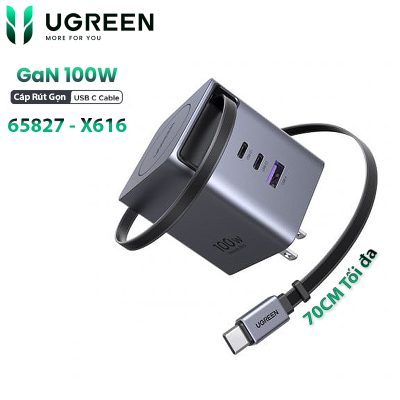 Sạc điện thoại GaN 100W Ugreen 65827 X616, 2 cổng…